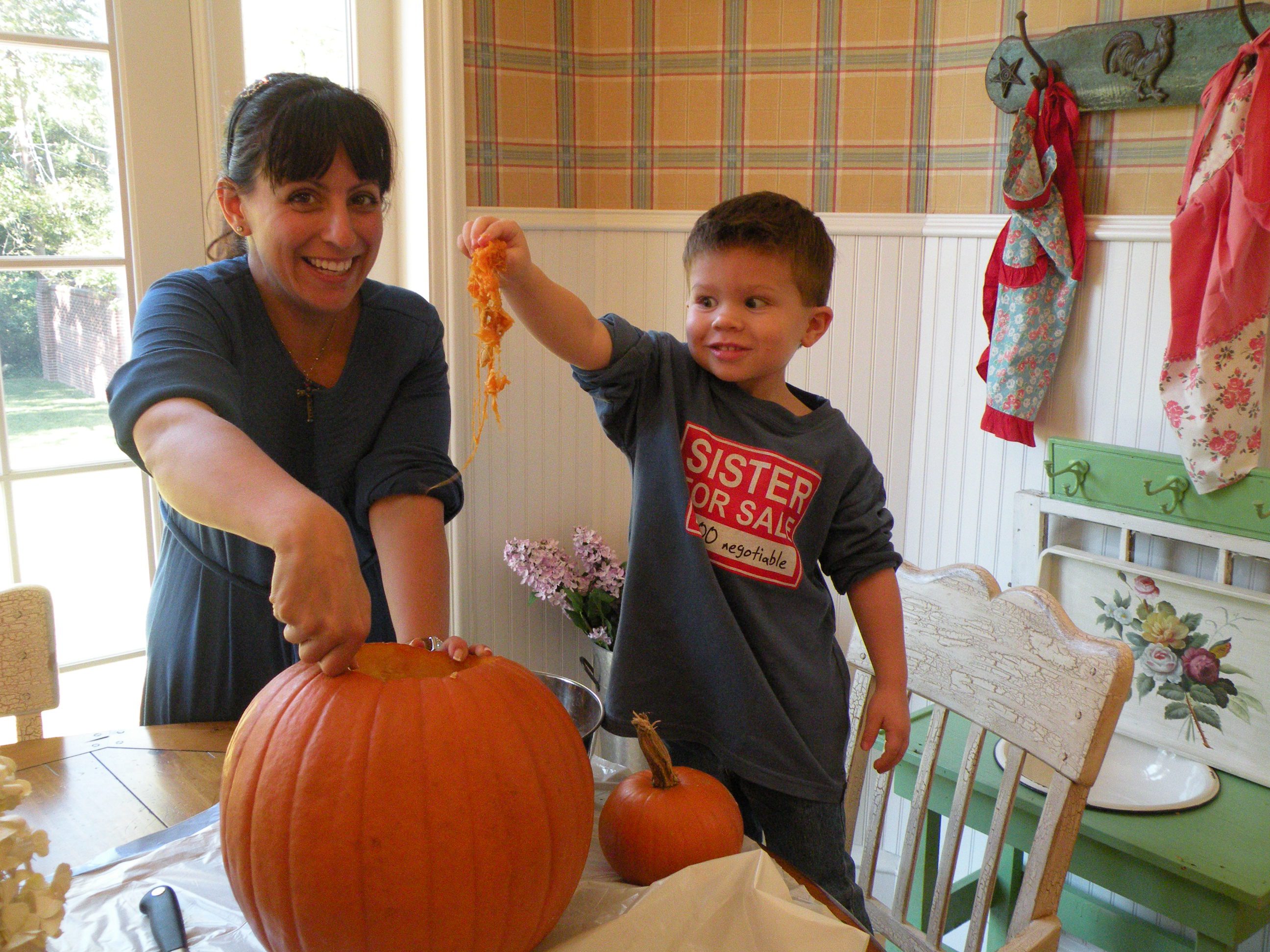 Natasha and Grant spent quality time together carving a pumpkin.