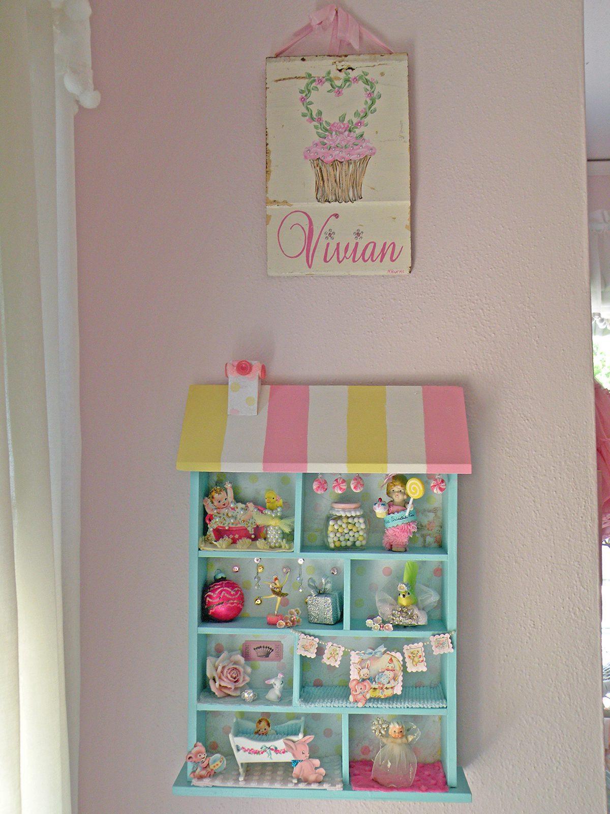 I love both rooms! My favorite thing in Viv’s room are those stackable hat boxes on the dresser–did you make those? I love them so much!!