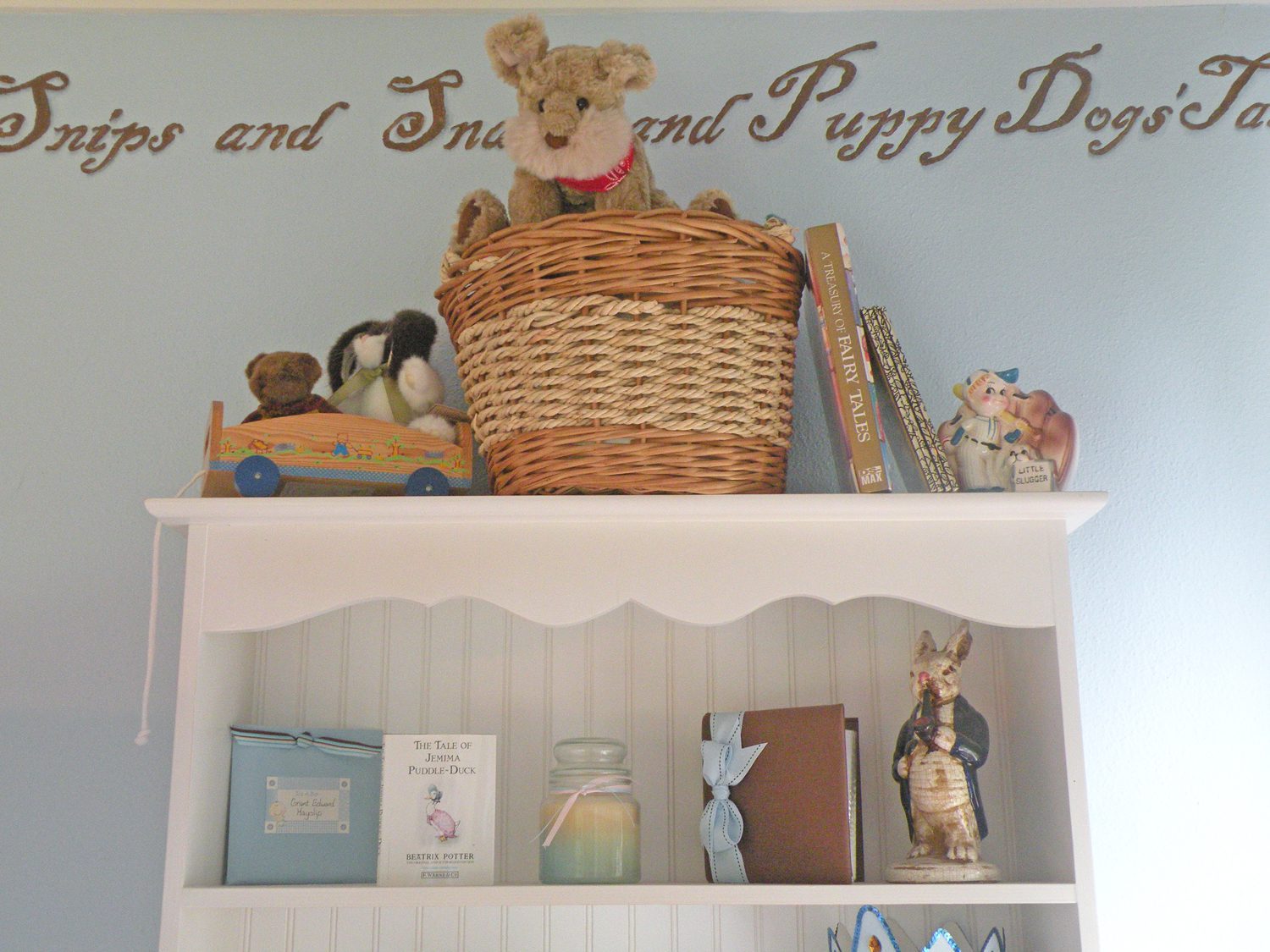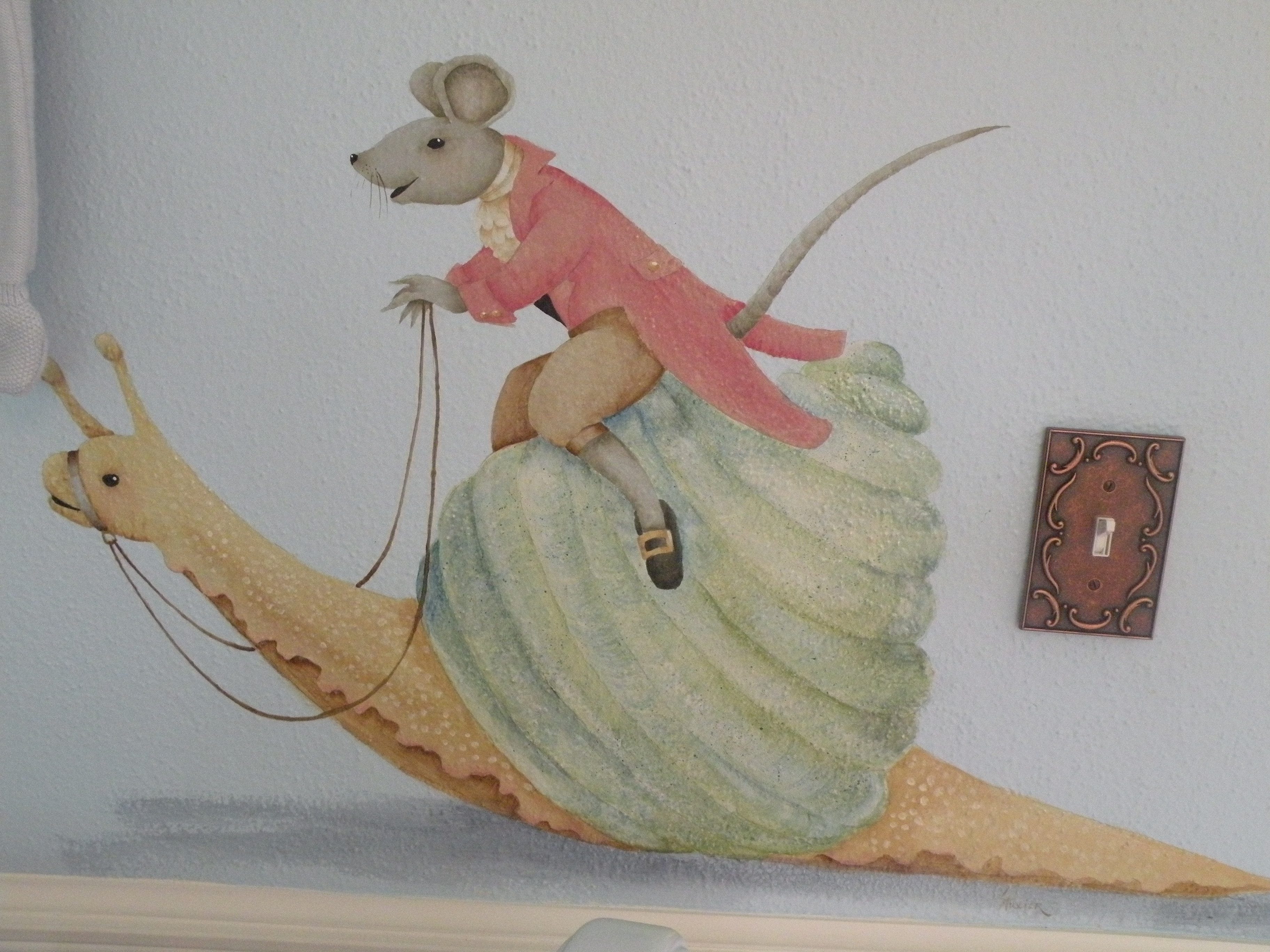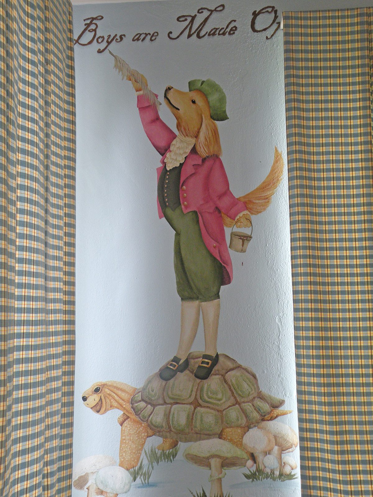 I had murals painted on his bedroom walls and the saying “Snips and Snails” all around the border of the walls.