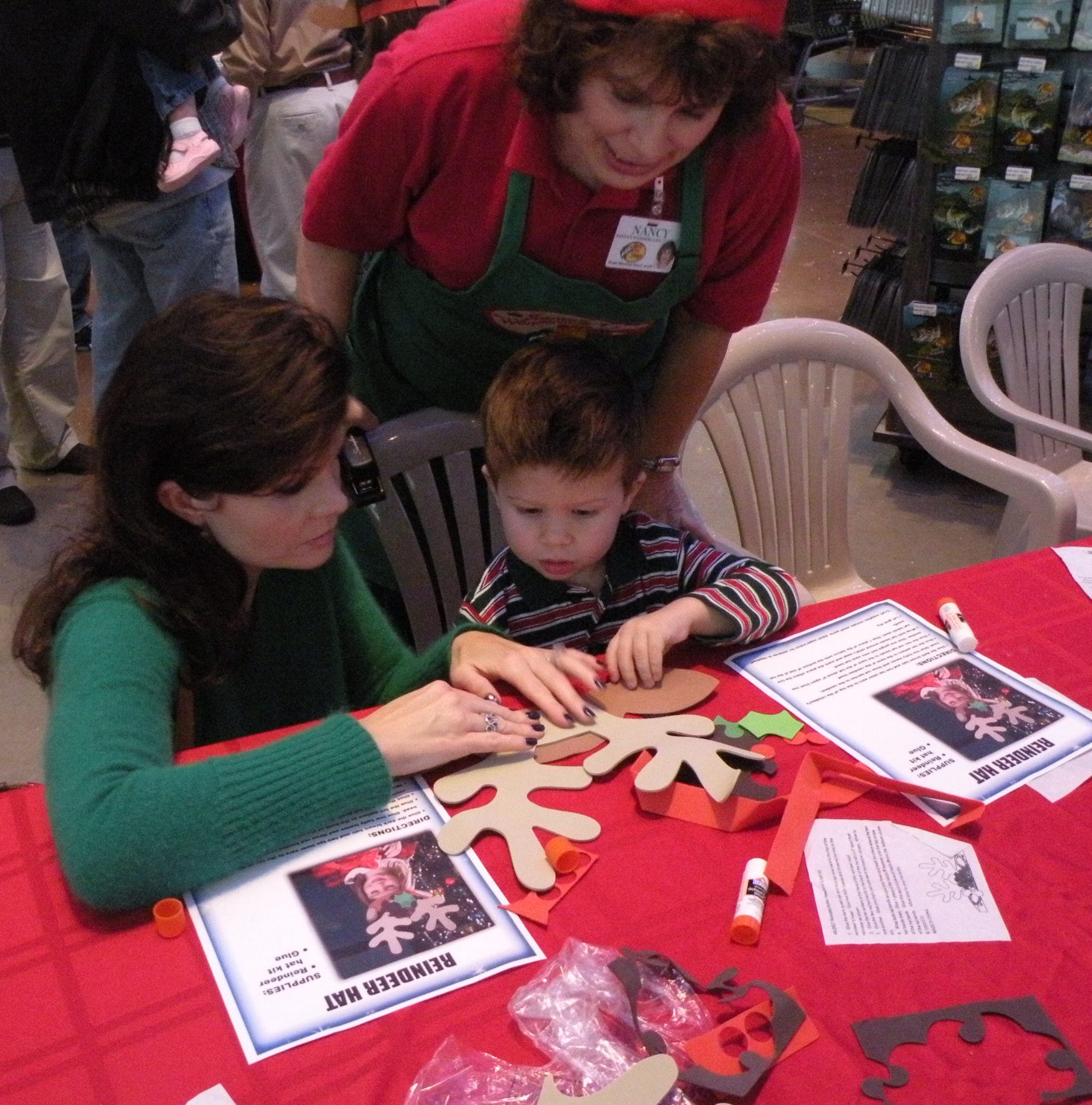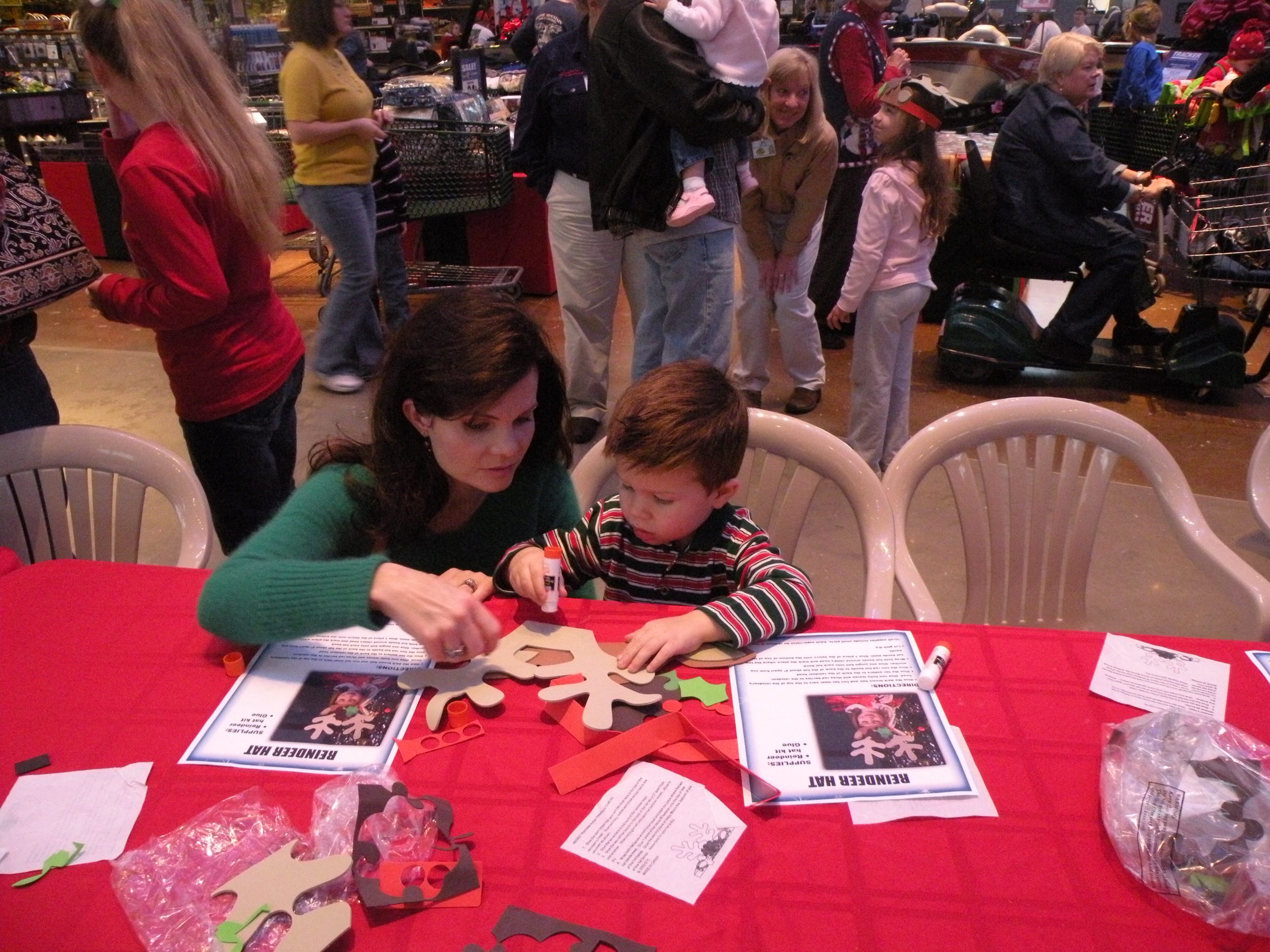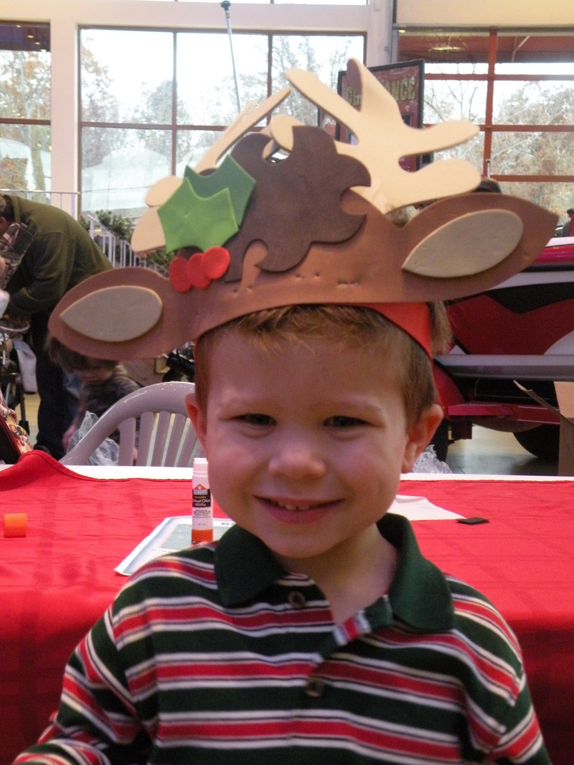 Mommy and Grant making a reindeer hat!