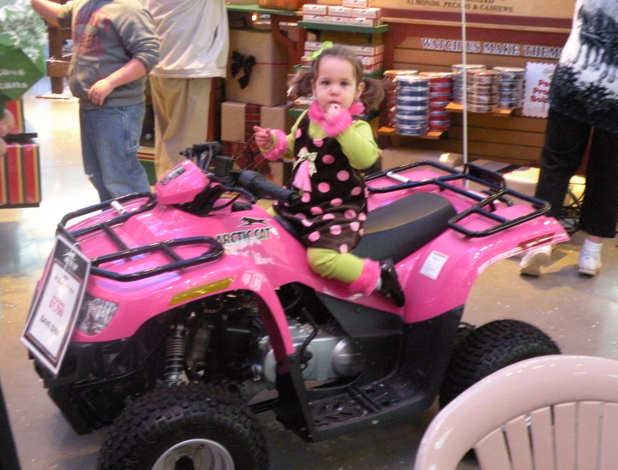 Meanwhile my daughter was taking NO intrest in crafts. She was ALL about the PINK mini ATV 4 wheeler. Somehow Im thinking my daughter is going to be a tomboy! hee! hee!